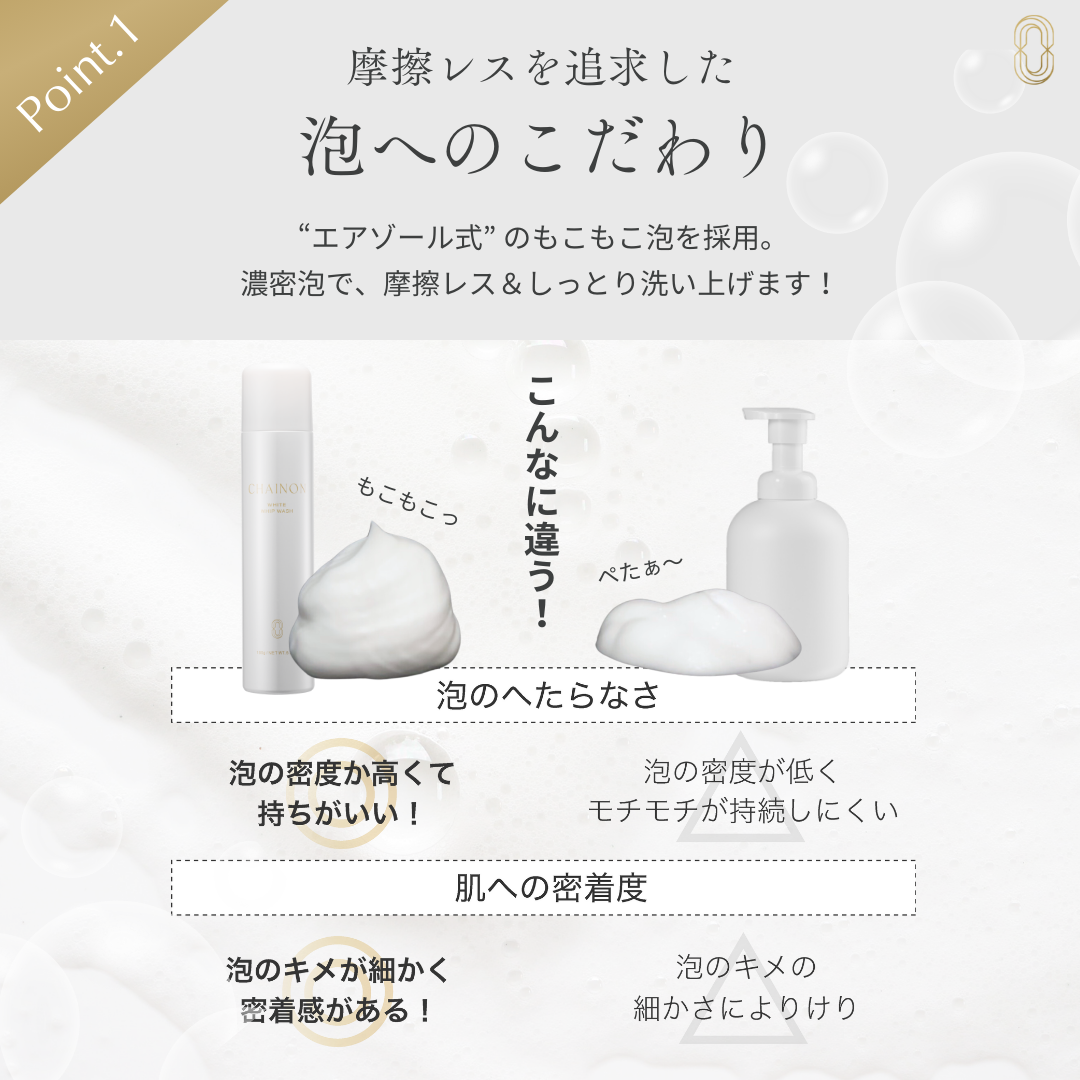 もっちり濃密泡でやさしく、落とす。 泡マスクが肌に密着し包み込む 贅沢潤いを残すホワイトニング洗顔