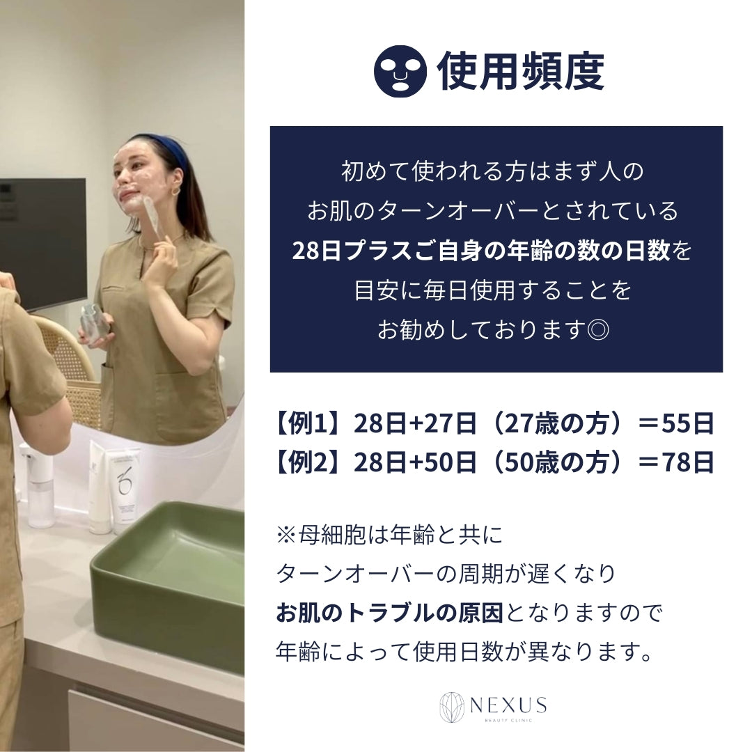 グローパックCL+の使用頻度はターンオーバーの期間を意識して考えていただくのがおすすめです。ターンオーバーの期間には個人差がありますが、「28日+実年齢」と表現されることがあります。