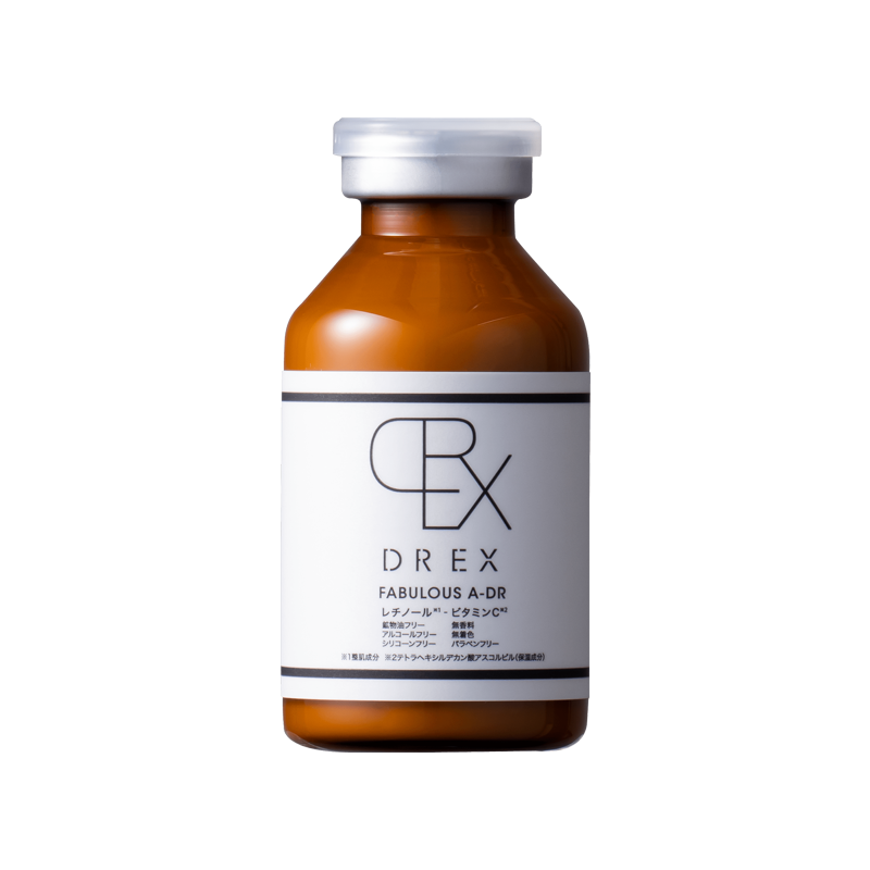 レカルカのDREXファビラスA-DRは、高濃度のレチノール(ビタミンA)を配合した医療機関専売の美容液です。ビタミンAは美肌に欠かせない成分ですが、紫外線に弱い特性を持っています。そこで本製品は成分の安定性を向上させるため、イヌリン化合物にビタミンAを閉じ込めてから配合。肌を健やかに整え、ハリのある肌を叶える効果が期待できます。また、ビタミンA誘導体としてリノール酸レチオールを配合。デイリーで使用することで、透明感のある肌を目指せる美容液です。