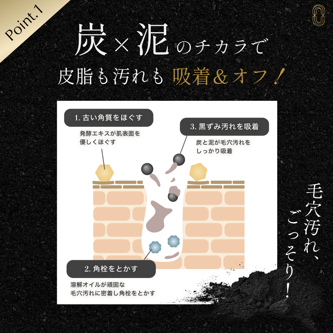 ◎炭×泥のチカラで皮脂も汚れも吸着&オフ!