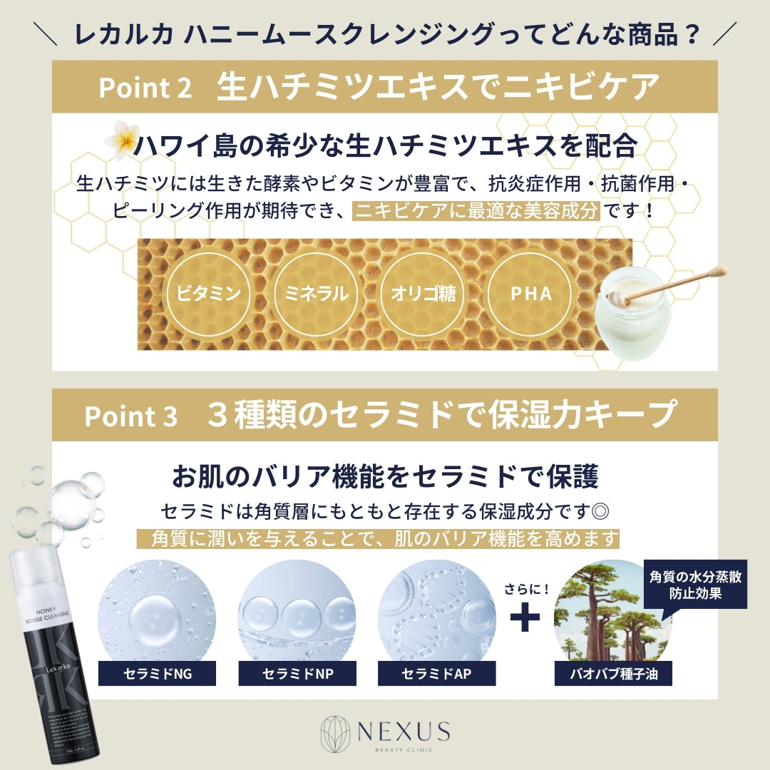 POINT2 抗菌効果+肌荒れ防止効果+ピーリング効果のあるハワイ産のホワイトハニー(ハチミツエキス)でニキビケア